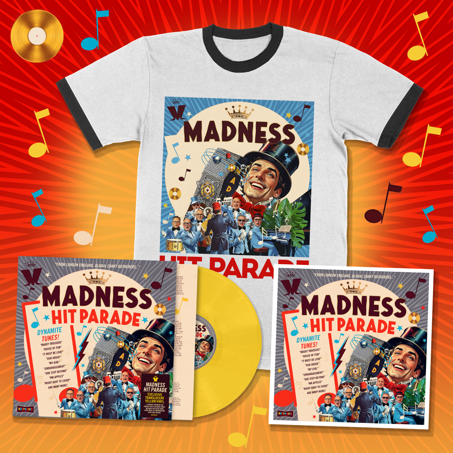 Enjoy a Madness career-spanning overview with Hit Parade; a 15-track highlights LP, featuring 13 UK Top 40 hits including Our House, It Must Be Love, Baggy Trousers, Lovestruck, and the No.1 single House of Fun.