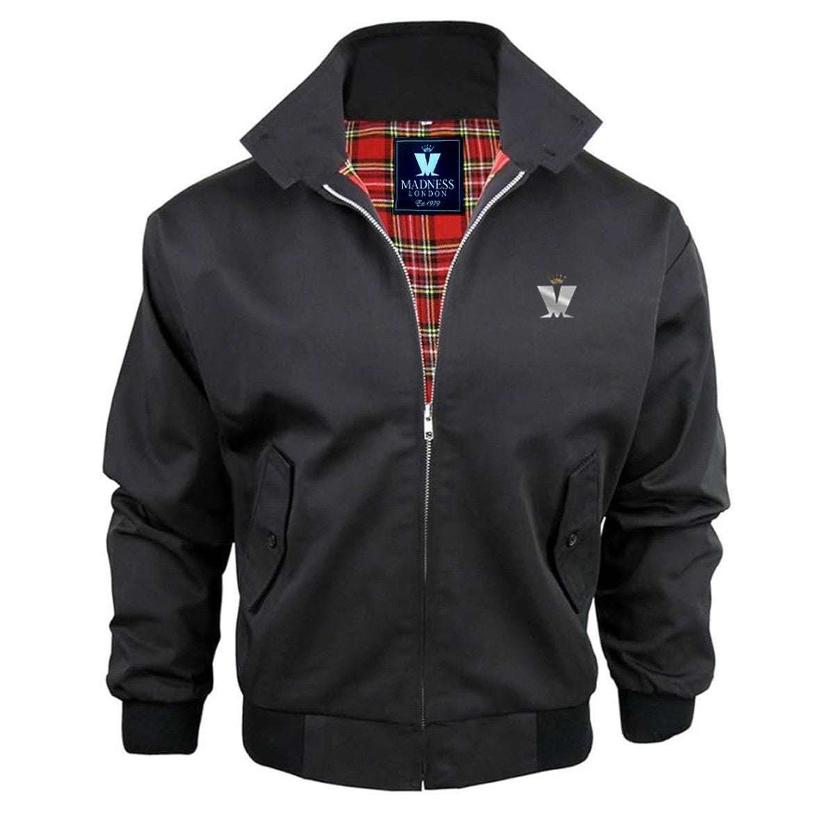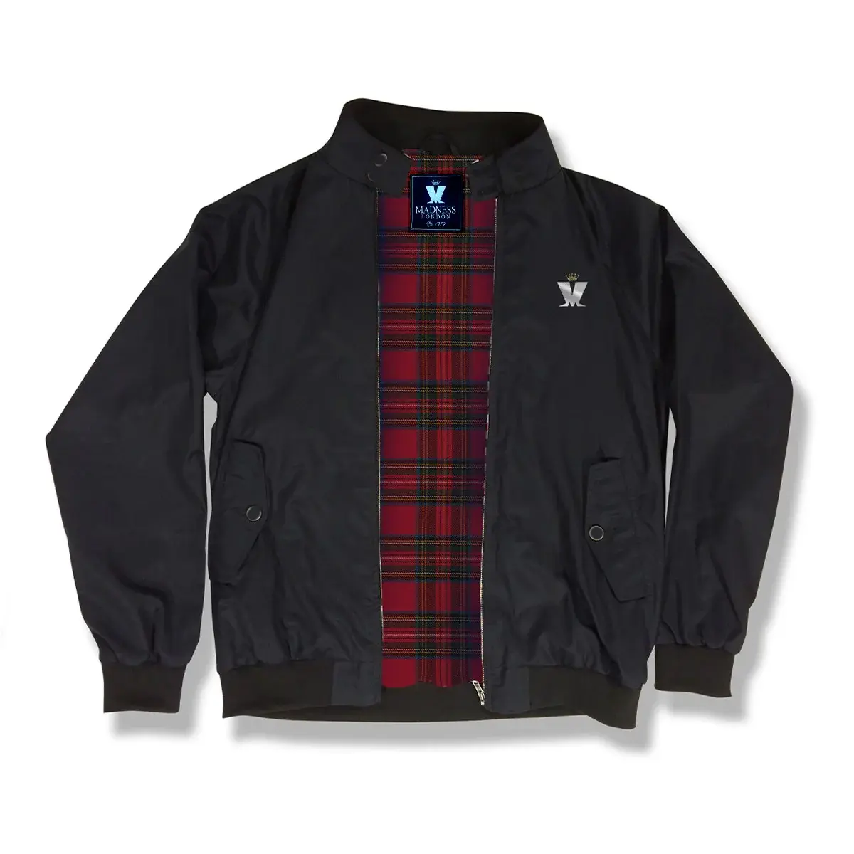 Madness Limited Edition “Gold Crown” Black Harrington Jacket with Gold Crown embroidery and tartan lining.