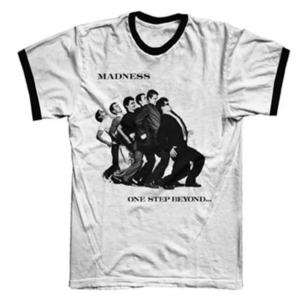 White unisex T-Shirt with One Step Beyond design on the front.